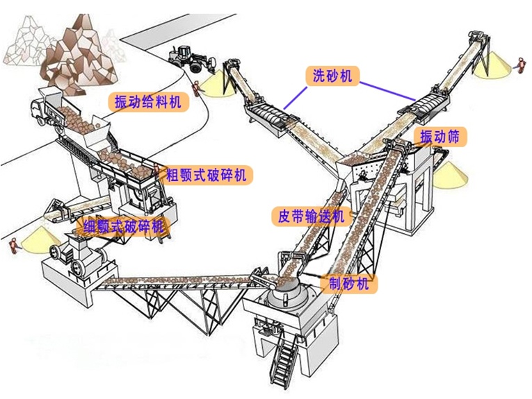 制砂生產(chǎn)線流程示意圖: